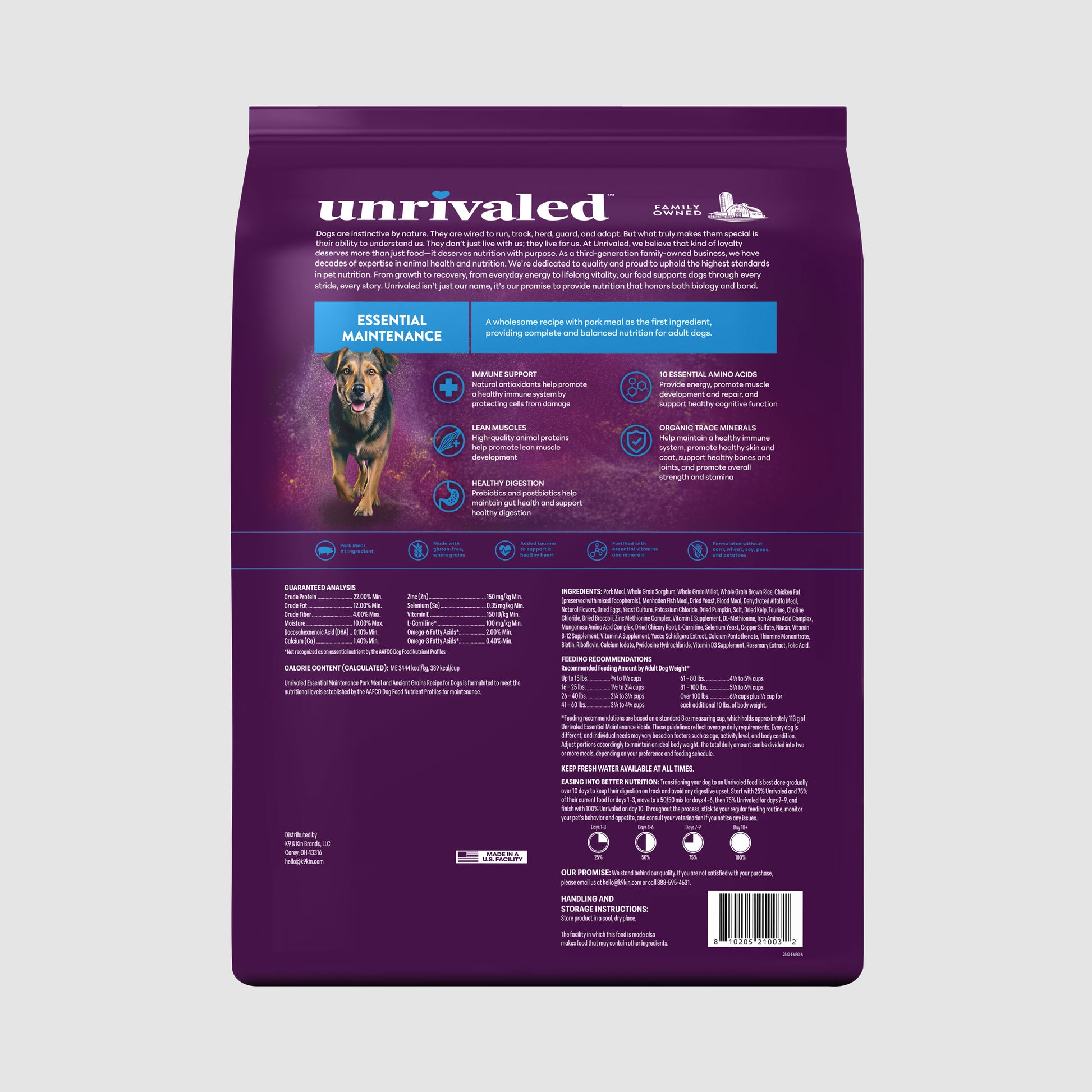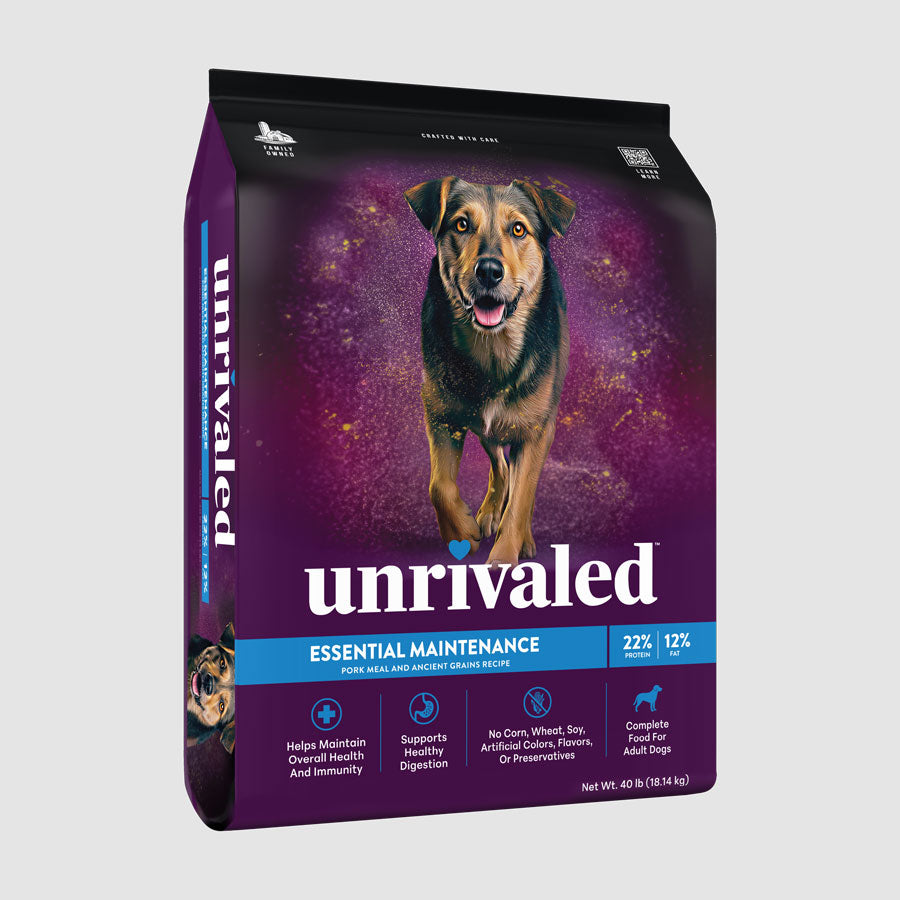 A wholesome recipe with pork meal as the first ingredient, providing complete and balanced nutrition for adult dogs.